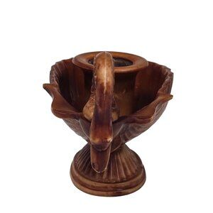 Vintage Wood Tone Swan Hard Plastic Votive Candle Holder 6x3 Made in Italy