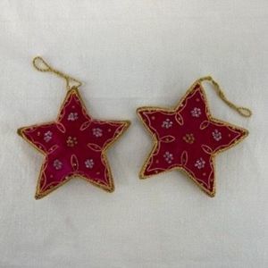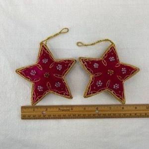 Vintage Woodbridge Designs Red Velvet Gold Trim Star Ornament Lot of 2