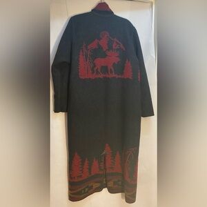 Vintage Wooded River Reversible Wool Blend Long Warm Coat Moose Size Medium