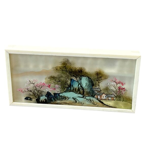 This decorative abacus combines functionality and artistic charm, featuring a serene hand-painted landscape on its backdrop. Ideal for home or office display.