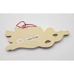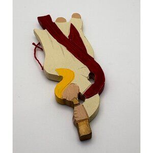 Vintage Wooden Angel Christmas Tree Ornament with Trumpet Horn & Red Sash