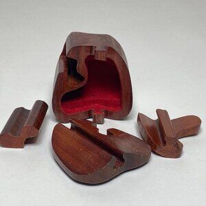 Vintage Wooden Apple Puzzle Box 4 Pieces Trinket Jewelry Container Felt Lining