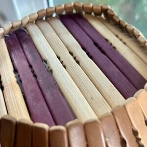 Vintage Wooden Bamboo Fruit Bowl Two-Tone Basket 10" In very nice vintage condition. Measures approximately 10" in diameter.