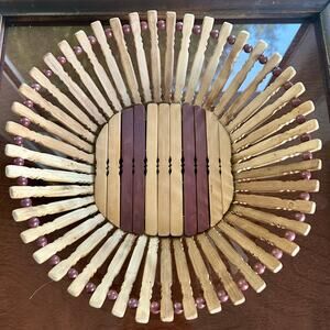 Vintage Wooden Bamboo Fruit Bowl Two-Tone Basket 10" In very nice vintage condition. Measures approximately 10" in diameter.