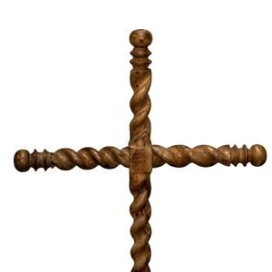 Vintage Wooden Barley Twist Cross with Base | Hand-Carved Holy Cross Decor