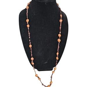 Vintage Wooden Beaded Long Strand Necklace Estate Piece Brown Shells