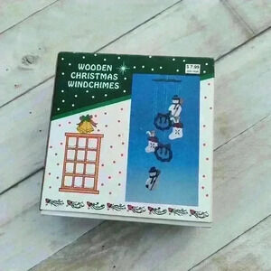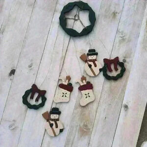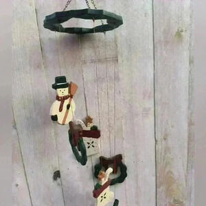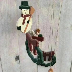 Vintage Wooden Christmas Wind Chimes Snowman Wreath Stockings 1994 Decorations
