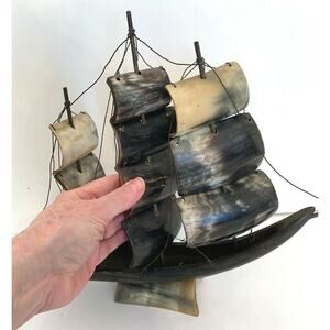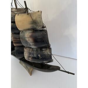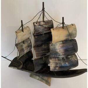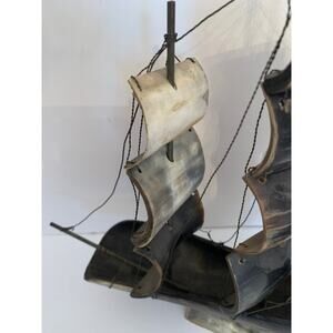 Vintage Wooden Clipper Ship Three Masts Lacquered Finish 11 1/4"h x 14"l