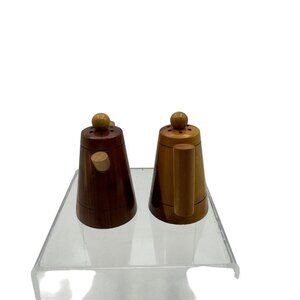 Vintage Wooden Coffee Pot Salt & Pepper Shakers With Green Laurel Wreath Design