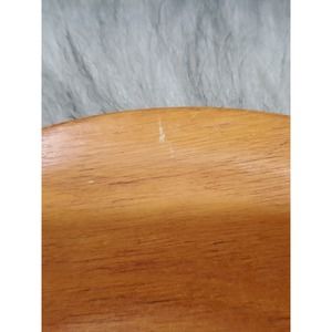 Add a vintage touch to your home decor with this small round brown wooden plaque. Featuring the religious phrase "Give Us This Day Our Daily Bread" in textured letters, this wall-mounted piece is perfect for any room. The plaque is crafted in a natural finish and has a decorative style that fits well with a 1960s or religious theme.