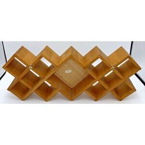 This wall shelf is in very good condition. This vintage wooden diamond-shaped wall shelf spice rack with an apple-themed design and 10 cutouts is a charming addition to any kitchen or home decor. Made of oak wood in a solid brown color, this medium-sized spice rack is perfect for organizing and displaying your favorite spices or small kitchen items. The retro style and vintage design make it a unique and functional piece for adults who appreciate collectibles and food-themed decorations in their space. Made in Thailand, this original wall-mounted spice racks adds a touch of nostalgia to any room.