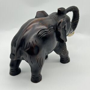 Vintage Wooden Elephant Hand Carved 6x9" Detailed Art Sculpture 1950s Figurine