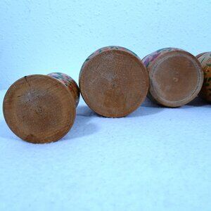 Vintage Wooden Folk Art Spice Containers Egg Cups Toothpick Holder Hand Painted