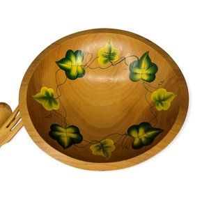 Vintage Wooden Footed Bowl with Matching Utensils