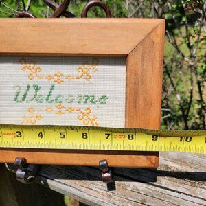 Vintage Wooden Framed Cross Stitch "Welcome" Sign With Scroll Design