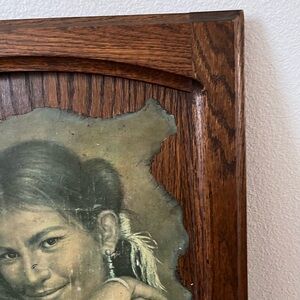 Beautiful portrait art in a wooden frame. Features warm brown tones. Size is 15/20 inches