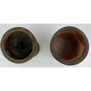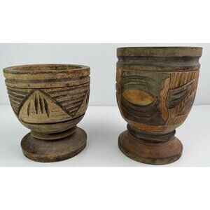 Vintage Wooden Hand Carved Pedestal Mortar/Cup/Vase Set Of 2 Rustic