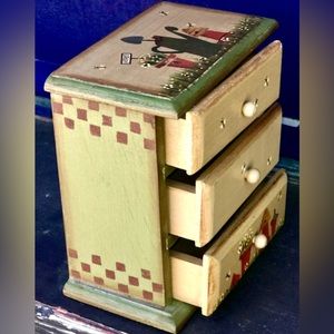 Vintage Wooden Miniature Hand Painted Illustrated Honey Bees Flowers Honeybee Hive HERB STORAGE Chest of Drawers Model Dresser Spice Box