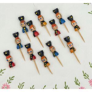 Vintage Wooden Hand Painted Mini Soldier Cupcake Cake Picks Lot of 11 Japan 60s