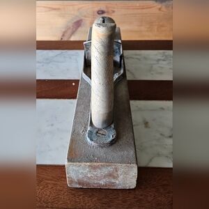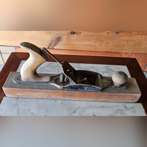 Enhance your home decor with this vintage wooden hand plane. Its rustic brown finish adds a touch of classic charm to any space. Pre-owned 1920s (Bailey) Stanley Rule & Level Co. No. 27 transitional plane. The No. 27 was a common size for a jack plane. These planes were used for general stock removal and smoothing. They are sought after by collectors and woodworking enthusiasts for their antique originality. This item has noticable wear and rusting due to its use and age. Please refer to pics for further item description. Sold as is.