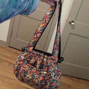 Vintage Bermuda Bag Wooden Handle Long Shoulder Strap Floral Boho MCM Cottagecore Handmade