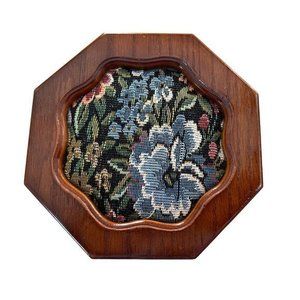 Vintage Wooden Jewelry Box with Padded Tapestry Insert in Lid