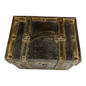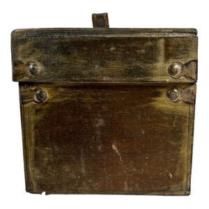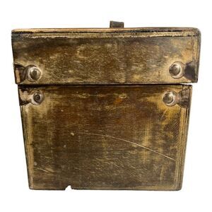 Vintage Wooden Leather Box Trinket Photo Keepsake Storage Case Handle Clasp