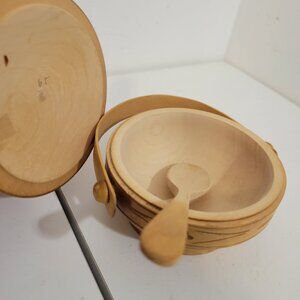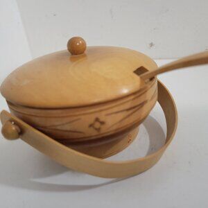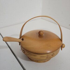 Vintage Wooden Lidded Sauce Bowl and Spoon with Handle from France