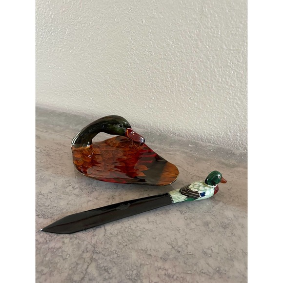 Vintage Wooden Mallard Duck Small Tray and envelop opener