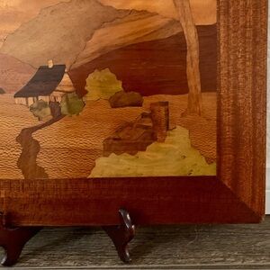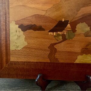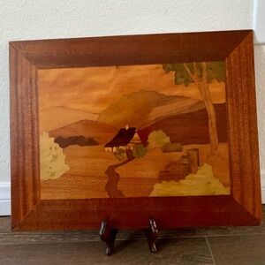 Vintage Wooden Marquetry Wall Plaque 12/15 Inch