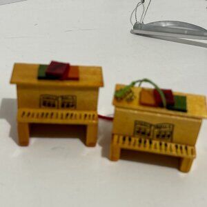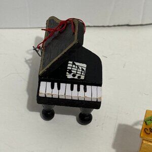 Vintage Wooden Musical Christmas Tree Ornaments Set Instrument Piano 10 Piece