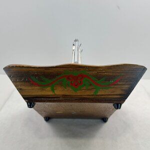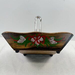 Vintage Wooden Nut Dish 9" Metal Nutcracker Picks MCM Hand-Painted Pinecones