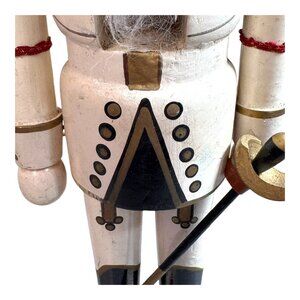 Vintage Wooden Nutcracker Soldier Figurine 14" Mustache Fur Hat & Sword Red Gold