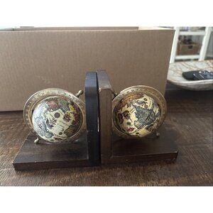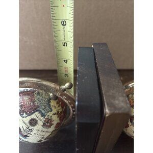 Vintage Wooden Pair Of Spinning Old World Globe Bookends 5”H x 5”w *READ*