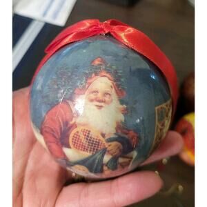 This lot of vintage wooden and paper mache handpainted Christmas ornaments features round balls adorned with intricate designs. Made of papier mache, wood, and paper, these ornaments are perfect for collectors of vintage holiday decor. The handpainted details add a charming touch to any Christmas tree, making them a unique and nostalgic addition to your seasonal decorations.