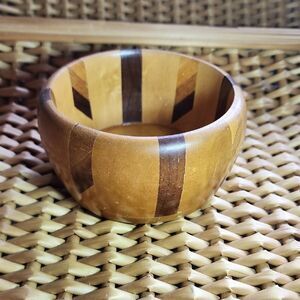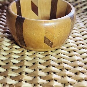 Vintage Wooden Parquet Bowl Multi Wood Segmented Parquetry