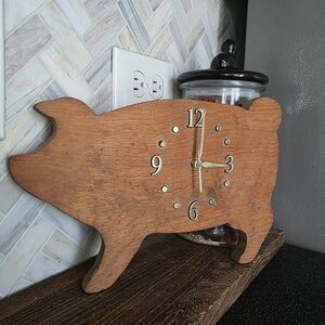 Vintage Wooden Pig Wall Clock Gold Hardware Battery Operated Working 12x8