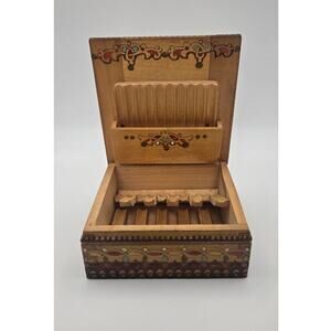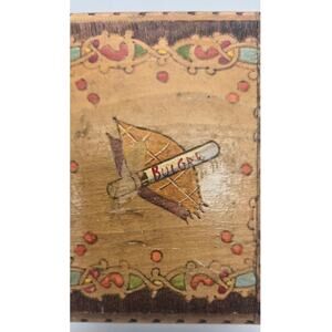 Vintage Wooden Pyrography Cigarette Box Pre-Loved