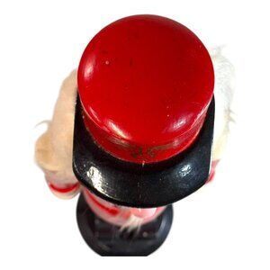 This handcrafted nutcracker brings festive cheer with its vibrant red and black design. A collector's piece, it's a timeless decorative addition to seasonal décor.