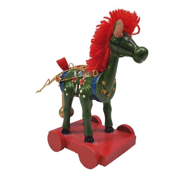 Vintage Wooden Red Rocking Horse Christmas Ornament Trojan Horse Ornament