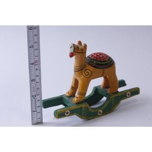 Add a touch of nostalgia and craftsmanship with this vintage wooden rocking camel figurine. Hand-carved and beautifully painted, this retro toy brings a timeless, whimsical charm to any space. Perfect for collectors, it doubles as a unique display piece with intricate details and a warm, rustic finish. Whether you're a fan of vintage decor or looking to enhance your collection, this wooden sculpture makes a delightful addition to any home or display. A true treasure for collectors and lovers of artisan pieces.