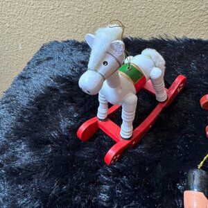 Vintage Wooden Rocking Horse Christmas Ornaments Set Of 3