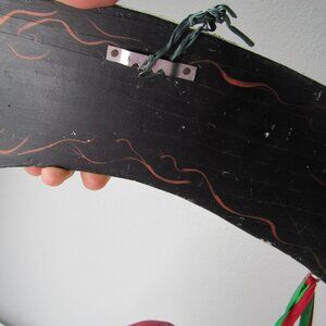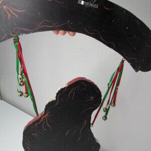 Vintage Wooden Santa Christmas Hand Painted Wall Door Hanging Decor used some signs of use unique piece measures 14x9''
