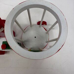 Vintage Wooden Santa Sleigh Reindeer Figurine Red White Holiday Christmas Kitsch