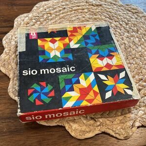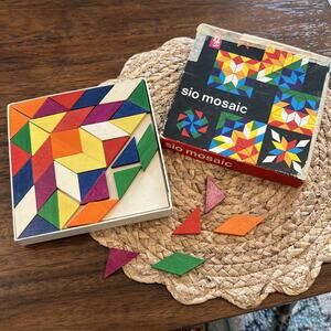 Vintage Wooden Sio Mosaic Puzzle Pieces & Box Creative Imagination Building