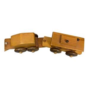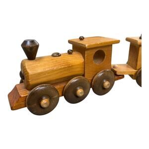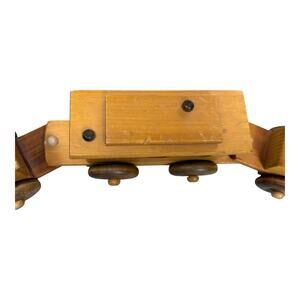 In good vintage condition, the wood does have minor scratching and small knicks. One of the pins that holds the cars together is loose.