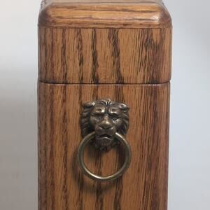 Vintage Wooden Stick Match Box with Lion Knocker Knob and Striker on the Back