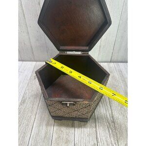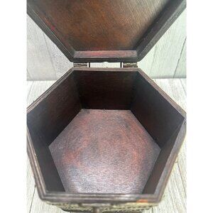 Vintage Wooden Storage Box Jewelry Keepsakes Hexagonal Shape Hinged Lid