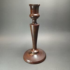 Vintage Wooden Taper Candle Holder, Unbranded Dark Wood Boho Chic 8" Candlestick
