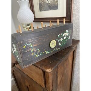 Vintage hand painted spool holder with drawer. Excellent vintage condition with no major damage to note.